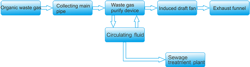 This technology is used for disposing exhaust gas of leather industry.,mainly produced in spraying workshop. The component of organic gas are complex, large amount ,but concentration is low, mainly including acetone, isopropanol, n-butyl acetate, glycol ether, etc.