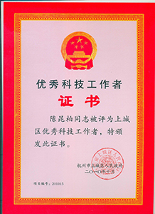 陈昆柏同志被评为上城区优秀科技工作者