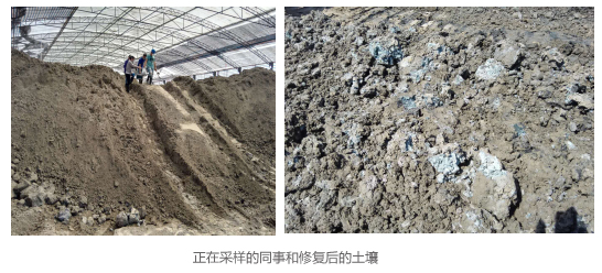 从室外到大棚,九游来到了土壤修复后的暂存区,烈日炎炎下的大棚温度超过了40℃,大家站着身上都在淌着汗水,这时见到了正在采样的同事,为了保障工程能够保质、保量完成,他们不畏酷暑、不怕严寒、不怕脏、不怕累,数月吃住在工地,为了最干净的环境,他们投入到了最脏的工作中去。