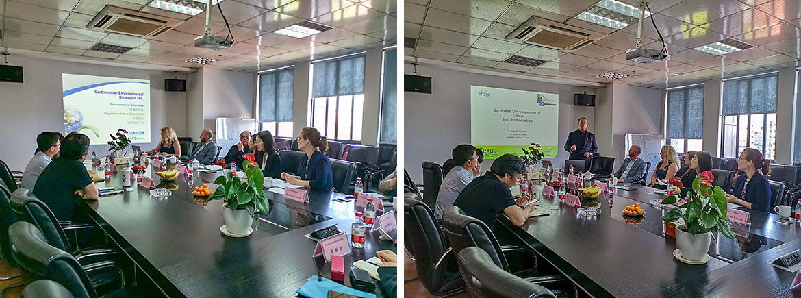 客人也分别介绍了自己公司的情况,Earthmaster业务发展副总裁Amber Flamand介绍该公司是一家专业的环境咨询公司,具有二十余年的发展历史,Earthmaster运营副总裁Adam Dunn详细介绍了公司的主打技术——PEPSystems植物复育法及运用该技术成功修复污染土壤的工程案例。McMillian-McGee总裁Bruce McGee介绍McMillian-McGee是一家专注原位热脱附修复技术的企业,自主研发了多套专利技术进行污染土壤的原位热脱附修复,并在全球范围内获得广泛使用。最后,九游体育团队分别就植物修复和原位热脱附技术与来访公司进行了交流和讨论。